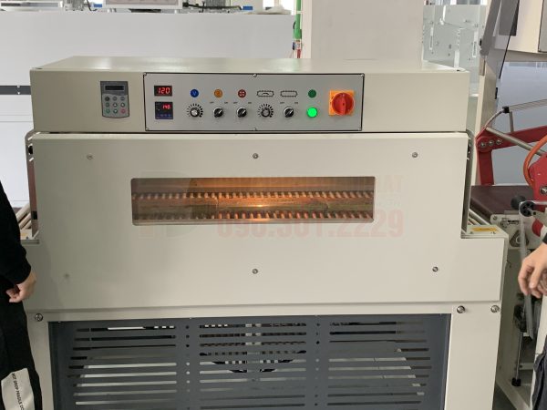 - Bên trong buồng, các thanh nhiệt sẽ tạo ra nhiệt độ cao, làm cho màng co lại và ôm sát vào sản phẩm.