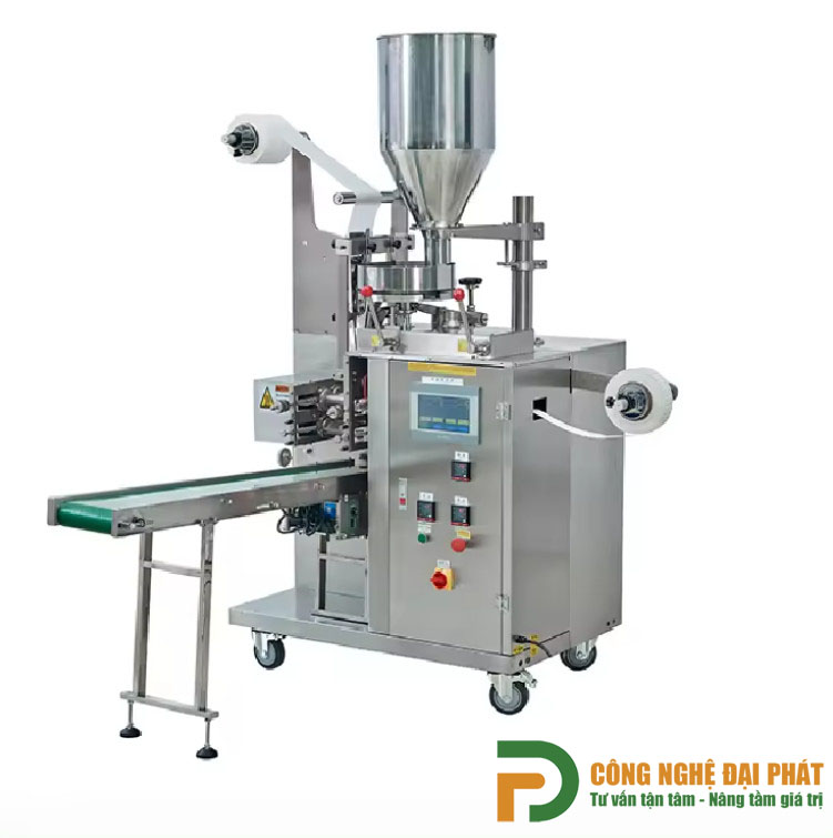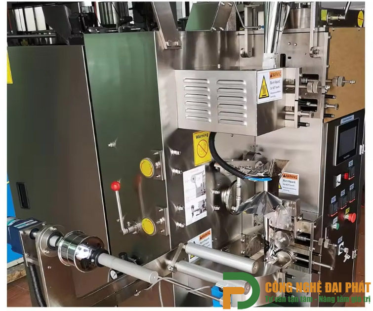 • Nguyên liệu: Đổ nguyên liệu cần đóng gói (hạt, bột, lỏng,…) vào phễu chứa liệu.
