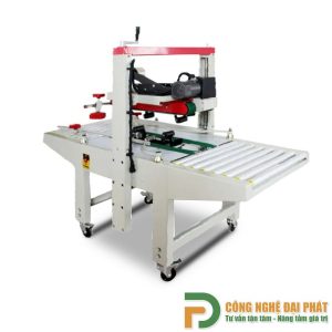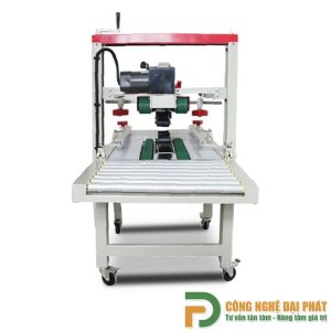 Máy dán thùng carton giá rẻ thường là các dòng máy bán tự động hoặc băng tải dán thùng thủ công (ví dụ, máy chỉ hỗ trợ băng tải và con lăn, người dùng vẫn phải đặt thùng và đẩy qua).