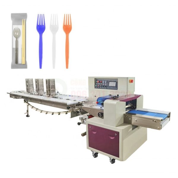Máy đóng gói đồ dùng 1 lần tự động (ĐGĐP-P48) là một thiết bị chuyên dụng, được thiết kế để tự động đóng gói các sản phẩm dùng một lần như dao cạo, bàn chải đánh răng, muỗng, đũa, khăn ướt, tăm bông,… Quy trình đóng gói tự động giúp tăng năng suất, đảm bảo vệ sinh và nâng cao tính thẩm mỹ cho sản phẩm.