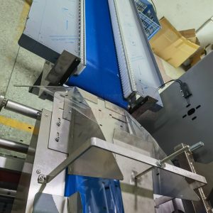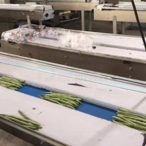- Cấp liệu (Feeding): Rau củ được đặt lên một băng tải cấp liệu. Có thể cấp liệu thủ công hoặc tự động từ một hệ thống cân/định lượng phía trước. Băng tải được thiết kế để đảm bảo sản phẩm được di chuyển một cách nhẹ nhàng, không gây dập nát.