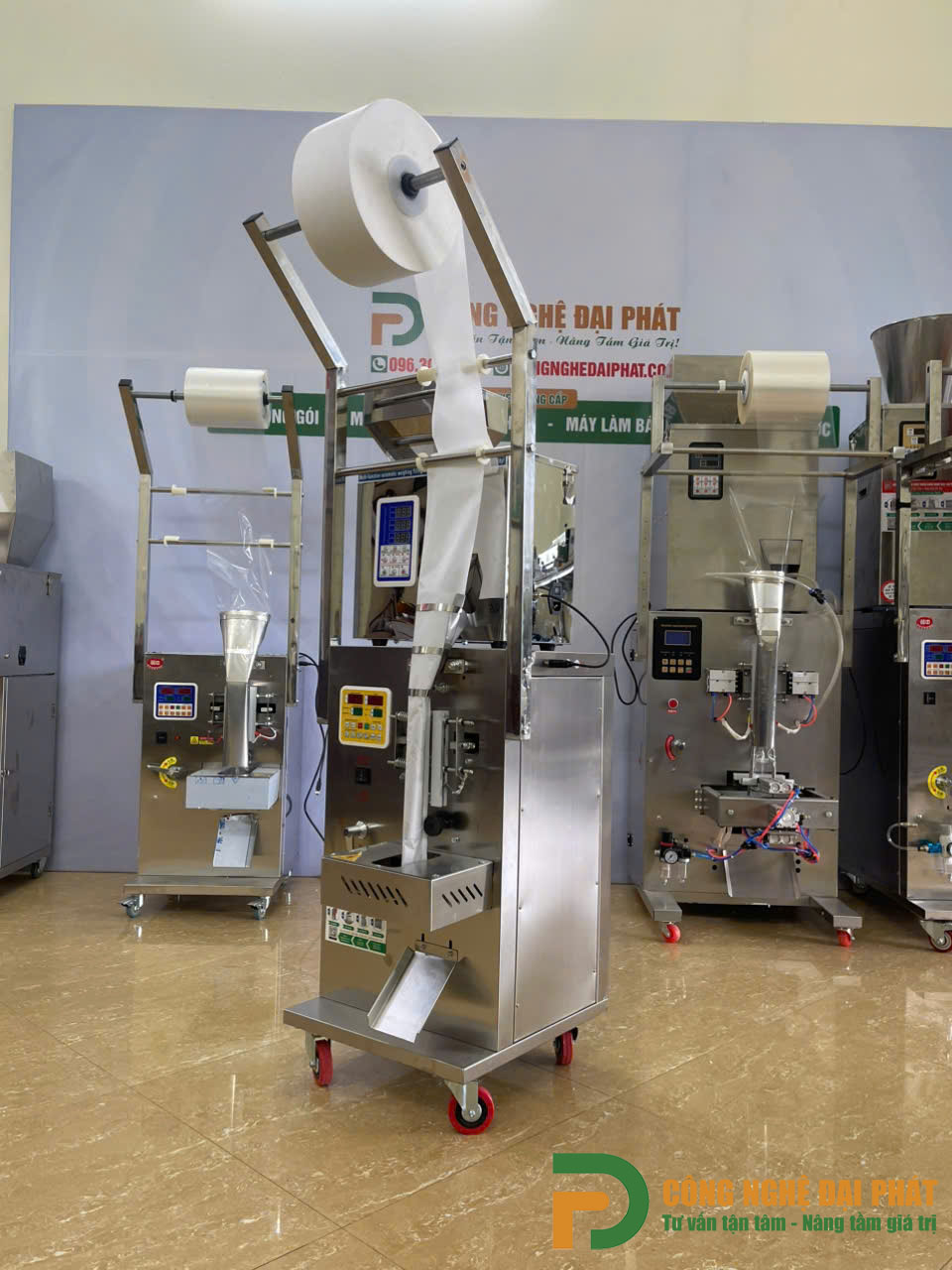 Máy đóng gói trà túi lọc 3 biên cạnh giữa ( mã mới) (ĐGĐP-P21) là thiết bị dùng để đóng gói các loại sản phẩm dạng bột, dạng hạt, trà mịn, thuốc đông ý… Máy là sự kết hợp giữ máy đóng gói và máy cân định lượng. Máy này hoạt động dựa trên phương thức hoàn toàn tự động. Các nguyên liệu sau khi được đưa vào phễu chứa sẽ được tự động định lượng và hàn miệng túi và cắt bao bì sản phẩm mà không cần người dùng tiếp xúc trực tiếp.