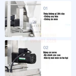 - Kiểm soát định lượng: Lượng sản phẩm được định lượng bằng cách kiểm soát số vòng quay của trục vít hoặc thời gian trục vít hoạt động.