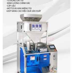 - Định lượng sản phẩm: Hệ thống định lượng (có thể là cân điện tử, trục vít hoặc piston) sẽ đo lường một lượng sản phẩm chính xác và đổ vào túi.