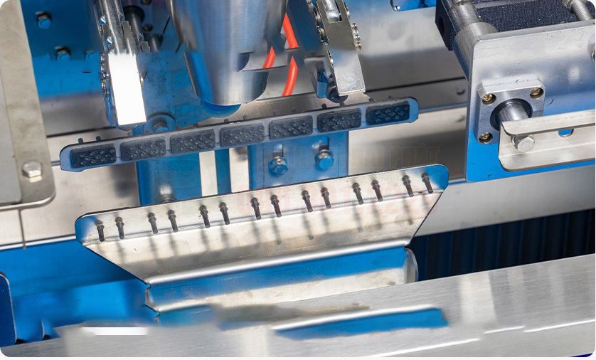 - Hàn miệng túi: Sau khi sản phẩm đã được đưa vào, túi sẽ di chuyển đến bộ phận hàn nhiệt để hàn kín miệng túi.