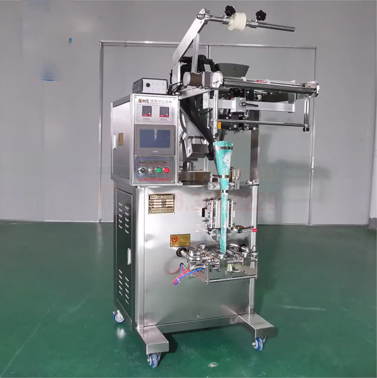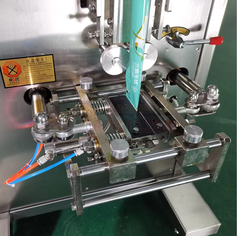 - Tự động hóa: Máy thực hiện các công đoạn từ định lượng, chiết rót đến hàn kín miệng túi một cách tự động và liên tục, giúp quy trình đóng gói diễn ra nhanh chóng.
