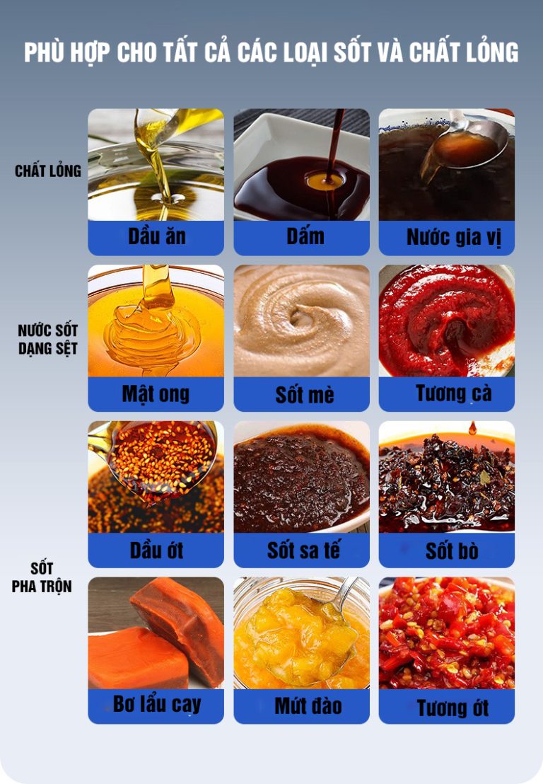 - Linh hoạt trong đóng gói: Chọn các đầu rót hoặc bộ phận máy có thể điều chỉnh để xử lý nhiều loại độ nhớt và kích thước bao bì khác nhau. Điều này giúp giảm thời gian chuyển đổi giữa các sản phẩm và tăng tính linh hoạt.